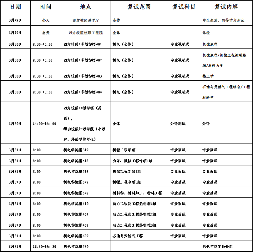 说明: 3月29日报到时,请在报到处--9778818威尼斯举牌位置填写报到登记详情表;3月30日专业课考试科目《机械原理》的考生请自带绘图工具;3月31日专业面试分组名单详见当天9778818威尼斯楼一楼张贴,各复试专业按照公布名单的顺序依次进行,政审表在面试时请交于各组政审老师;529房间为考生面试候场处。