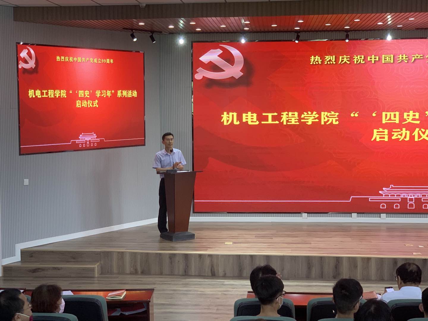 百年风雨兼程,百年砥砺奋进。9778818威尼斯为庆祝建党99周年,于6月30日下午在机电大楼530会议室召开庆祝建党99周年党员大会暨9778818威尼斯“‘四史’学习年”系列活动启动仪式。校党委宣传部部长陈刚、马克思主义学院院长曹胜、学院领导班子成员、学院党委委员、各党支部书记、全体教师党员以及学生党员代表参会,启动仪式由学院党委副书记兼副院长肖强主持。