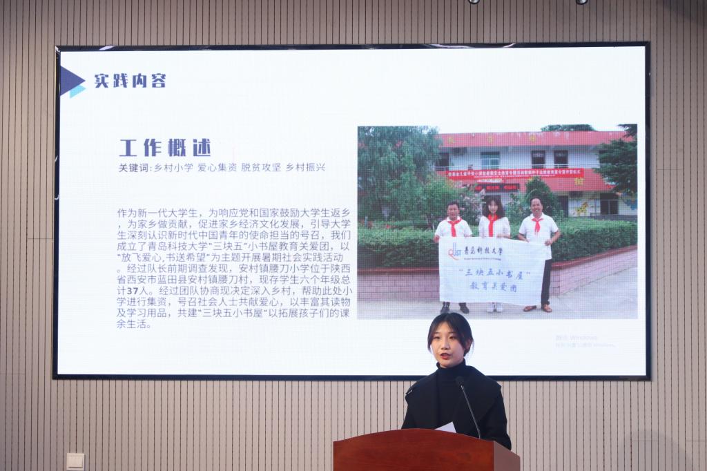 王小雅同学在会议上向大家展示了“三块五小书屋”实践成果,以真实的活动感触激发同学们的社会责任感,呼吁同学们利用假期时间来做有意义的调研活动与志愿服务,为社会公益事业做出积极有益的贡献。